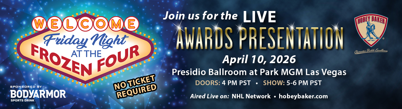 The most coveted award in collegiate hockey, the Hobey Baker Award is given to the top NCAA men’s ice hockey player in the nation. Winners are chosen not for raw skill or stats or character alone, though those are important. They are selected for everything they do.