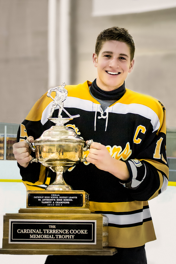 For the 2013-2014 season, we are nominating senior Matthew Martino to receive the Hobey Baker award. Matt has been a crucial part of the St. Anthony’s Varsity Ice Hockey team for the past three seasons, both on and off the ice. This season Matt was selected to be our team captain. He far surpassed our expectations of what a captain should be and do. He organized team meetings with the players, lunches, and other events. Matt was critical in keeping morale up on the bench and encouraging the team to push themselves as far as they could go. Without doubt, Matt exemplifies the character traits that are expected of a Hobey Baker award recipient.