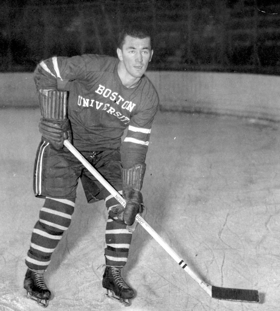 Jack Kelley began playing hockey in the 1940’s at Belmont High School in Boston. In 1949 he competed on an AHAUS team and attended Boston University, leading the Terriers to the NCAA finals in both 1950 and 1951. He was also named their most valuable player and all-ECAC in 1952. Kelley coached at Weston High School in the Boston area upon graduation from college, handling football, baseball and hockey teams.