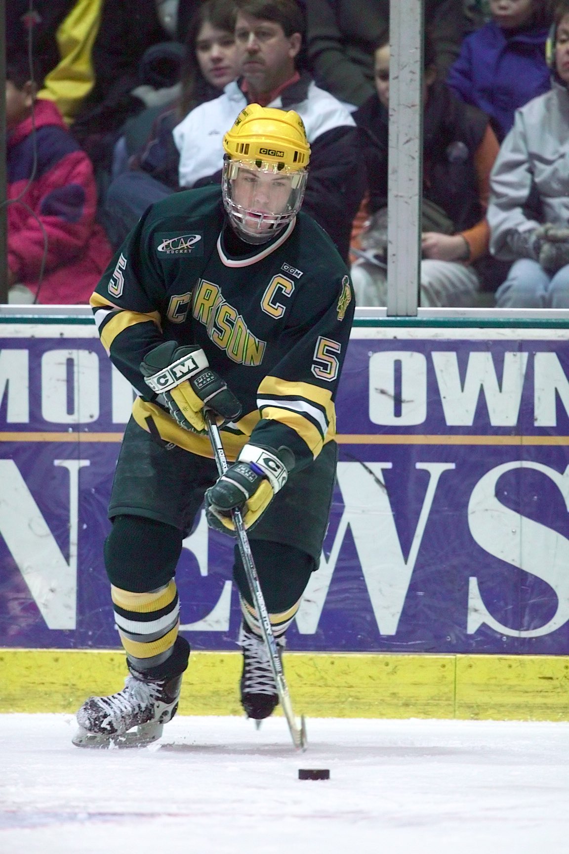 Kent Huskins played college hockey for four seasons at Clarkson University from 1997 to 2001. A talented defensive defenseman, he was a key player for the Golden Knights, helping them achieve two ECAC Regular Season titles and a conference tournament championship. In his senior season, Huskins was a co-captain and had a standout year, leading all ECAC defensemen with 34 points on six goals and 28 assists. His impressive performance earned him several honors, including being named to the NCAA East First All-American Team, the ECAC Best Defensive Defenseman, and a top-ten finalist for the Hobey Baker Memorial Award in 2001.