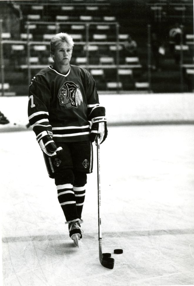 During a stellar collegiate career at the University of North Dakota, forward Steve Johnson was named a top 10 finalist for the Hobey Baker Memorial Award in 1988. In his senior season, he was a driving force for the team, leading the nation in scoring with 85 points (34 goals, 51 assists) in 42 games. His exceptional performance earned him a spot as a First-Team All-American, a First-Team All-WCHA selection, and the WCHA Student-Athlete of the Year award. Johnson’s impressive offensive output solidified his place as one of the program’s most decorated players, graduating as the third all-time leading scorer for the university with 191 points.