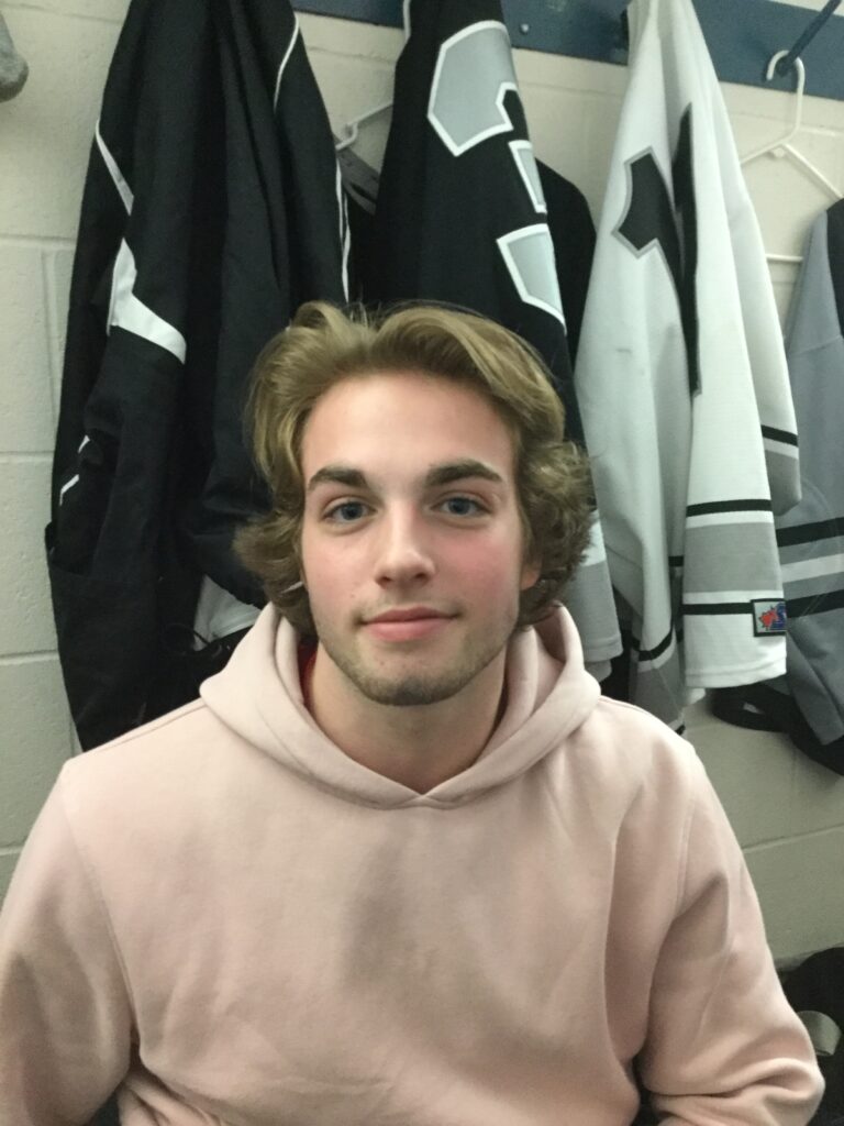 Adam is a captain for our team and he leads by example on and off the ice. His hard work and determination are respected by his teammates, coaches, and opponents. On the ice he plays a disciplined game and is often rewarded around the net for his efforts. He has helped lead our hockey team in two service projects, volunteering with our local parks department and local city rec department.