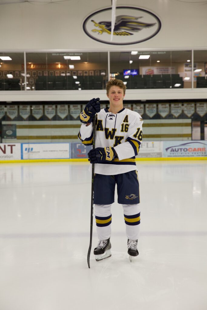 Drew is a dedicated student-athlete pushing himself to excel at all that he does. He has been a selfless leader for our hockey team, as a player, he moved from forward to defense to help fill a void in our line up. He has excelled at his new position helping our team by giving us another great athlete on the blueline. In addition, Drew works hard off the rink both in school and in the community. He is a leader, a competitor, and a great human being.
