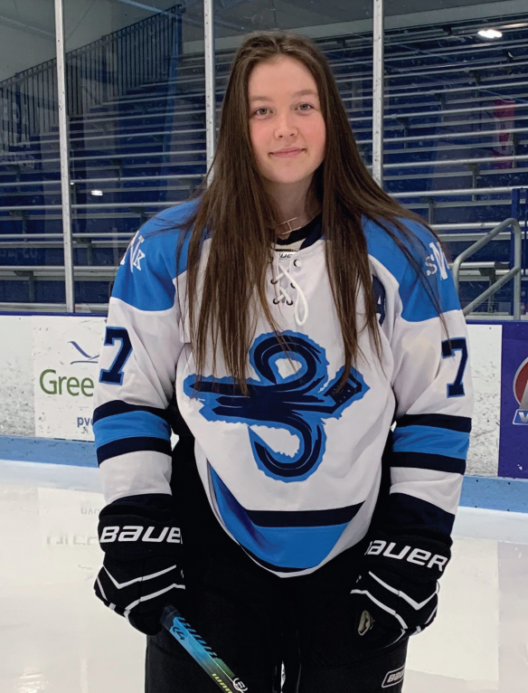 Hannah was selected because she always has a positive attitude and is so eager to learn the game and treats everyone with respect. She gives 100% effort any chance she gets on the ice and is supportive of her teammates on and off the ice. She is an assistant captain and leads the team with support and encouragement.
