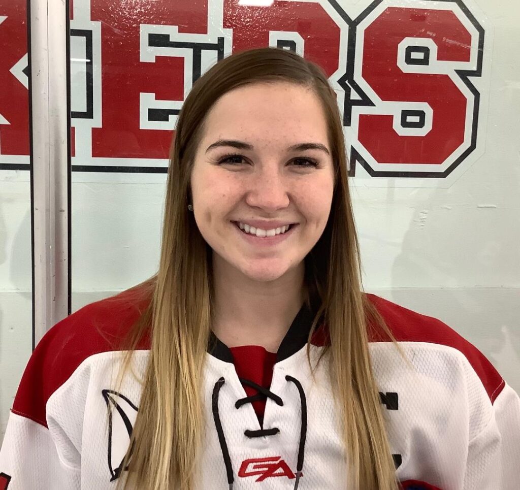 This year’s recipient, chosen by me , is a very special student athlete. She has excelled in the classroom with a 3.998 GPA, and a 5 year letter winner on this hockey team. Madyson may be a quiet leader, but can always be counted on to work harder than anyone else and to do the things asked of her to get things done. She is willing to do anything asked of her. She is an exceptional and caring person of the highest character. Those are some of the reasons this year recipient of the Hobey Baker award is Madyson Melgard.