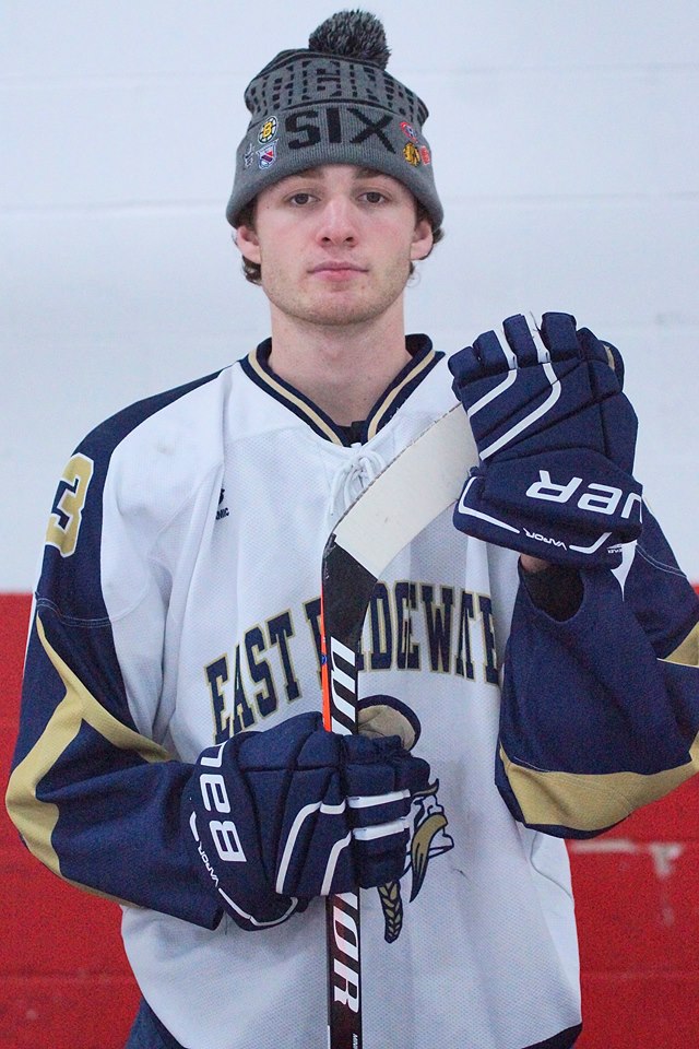 Nick captained a very young East Bridgewater Vikings hockey team this season and was asked to play a more defensive role at forward. Nick’s positive character was infectious, and the younger players responded well to his leadership. Nick would continually encourage his teammates both on and off the ice which played a large part in their development. Nick always took the initiative, was a valuable liaison for the coaching staff, school administrators, and the players. He is respected at school by both his teachers and peers alike. Nicks love of the game is always apparent and his leadership will be missed.