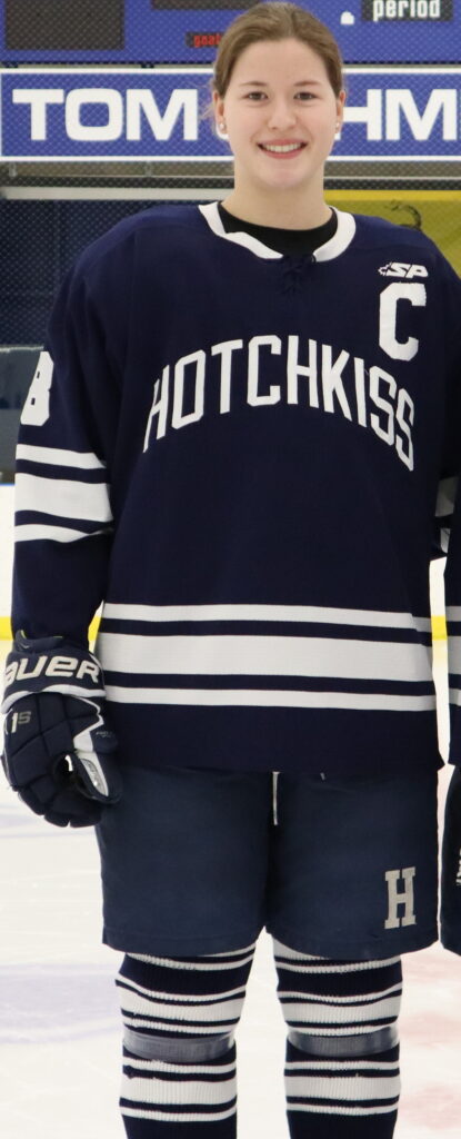 Ceaselessly prioritizing the team and others above her individual needs, and promoting growth and encouragement among her peers, Sandrine is an ambassador for not only the Hotchkiss Girls Varsity Hockey team, but also, and more importantly, the school itself. Committed to excellence in the classroom and beyond, Sandrine is, consistently and without fail, invested in those endeavors of which she is a part, understands failure as feedback, and craves criticism in all areas of boarding school life. As a captain, Sandrine is humble, hardworking, and driven by a desire to contribute and improve. Among her peers, Sandrine is someone who constantly embodies the values of accountability, discipline, selflessness, and integrity. She simply does not know how to do anything other than give her all, whether it be in the classroom, the dormitory, or in her athletic environments. Her teammates will be the first to tell you that her love for the game of hockey and sportsmanship are near unrivaled, which is high praise when it’s coming from other players and students who, too, are dedicated to excellence and character. Sandrine is undeniably deserving of the Hobey Baker High School Character Award.
