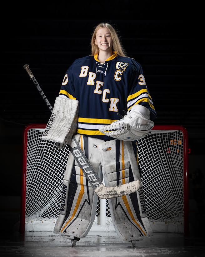 Sarah has been a 4 year varsity starting goaltender at Breck. She is an amazing young woman who excels in the classroom and on the ice. She is currently 4 saves away from breaking the career save record at Breck of 2028 saves, held since 2012. She also, currently holds a .933 save percentage this season. She prepares and executes like none other. She is a 4.0 student and a varsity golfer too.
