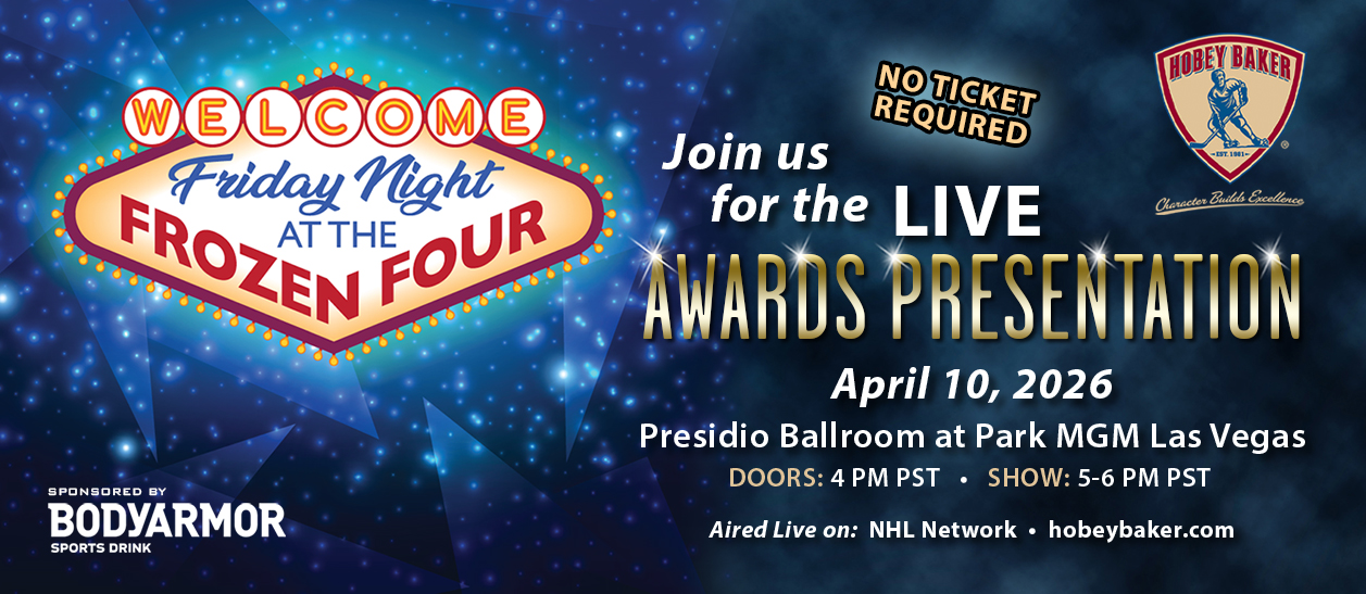 The most coveted award in collegiate hockey, the Hobey Baker Award is given to the top NCAA men’s ice hockey player in the nation. Winners are chosen not for raw skill or stats or character alone, though those are important. They are selected for everything they do.